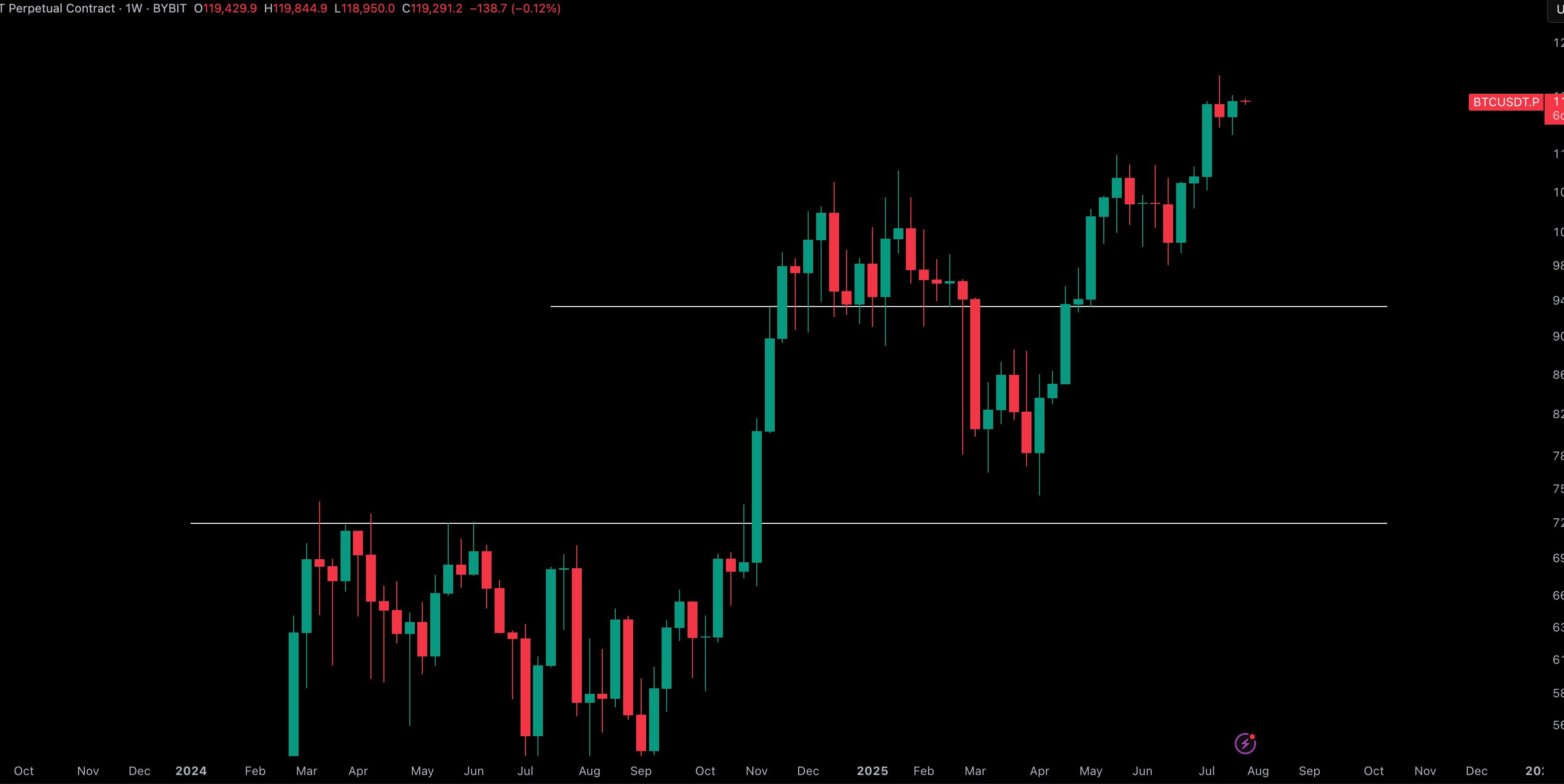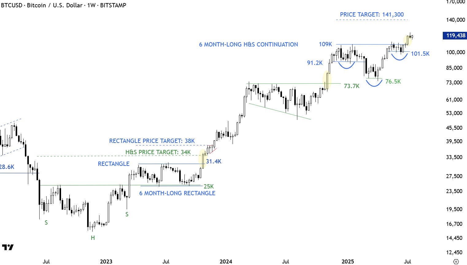 “Temmuz ayının ilk haftasında mola, mola uzun beyaz bir mumla gerçekleşti,” dedi X takipçilerine 141.300 dolarlık bir grafikle.