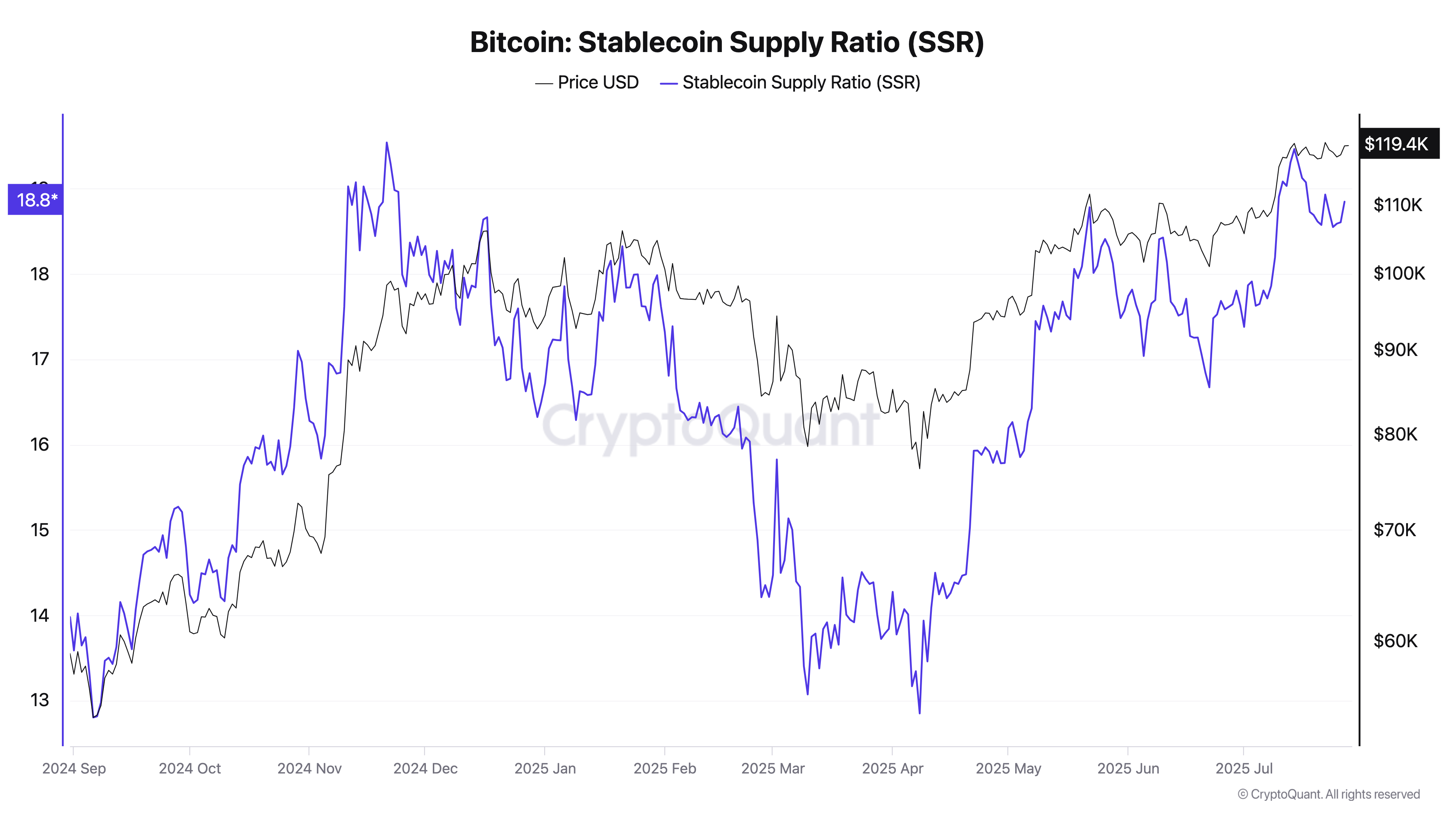 StableCoin besleme oranı (SSR) BTC/USD ile artar. Bu, StableCoin’in likiditesinin piyasadaki yatırımlar için uygun olabileceğini göstermektedir.